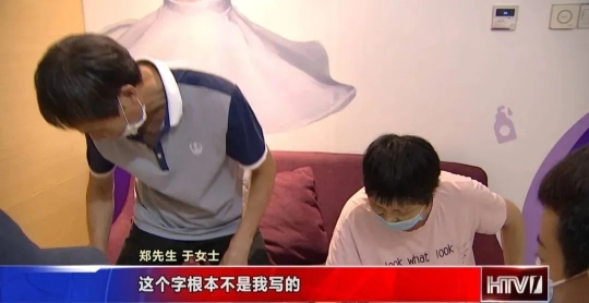下方有于女士的签名,日期是疫情后第一次来医院的时间,4月10日。但于女士表示,她根本没有看到过这份“知情书”。 郑先生 于女士: 这句话、这个字根本不是我写的,我们没有看到过,没有看到过这个东西。