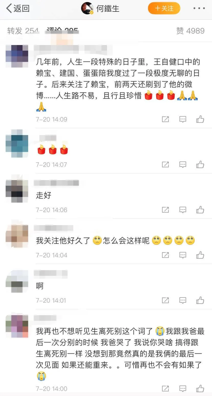 何铁生在评论区回复网友留言,赖宝是19日去世的,原因是心脏病。这一消息令不少人惊讶:“不敢相信”。