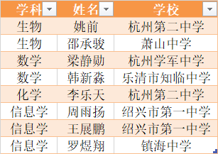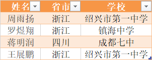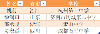 下面就来分学科看看,浙江竞赛强在哪? 01 先说刚刚传来好消息的国际生物奥赛,4人国家队里有2人来自浙江,占据半壁江山,分别是杭州第二中学的姚前和萧山中学的邵承骏。 2020年生物国家队名单