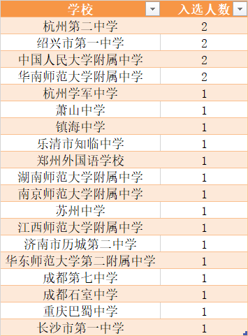 可以说,像杭二中这样的牛校,一所学校的入围人数,甚至超过一个省。 2020年五大学科竞赛国家队 各省入选人数汇总