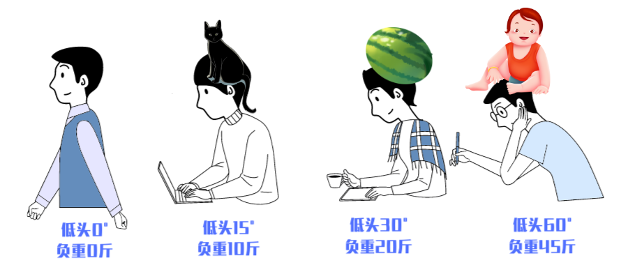 这是一项2014年的物理研究,这张图可以非常直观地告诉我们,头部越是前倾,颈椎受力就越大。 ● 头部摆正时:颈部受力10-12磅 ● 头部轻轻低一点,前倾15度,颈部就要承受2倍的压力! ● 头部弯到60度的时候,就要承受5-6倍的压力,相当于脖子上放了个54斤的孩子,时间长了脖子能承受不? 所以长时间低头伏案工作的人群—教师、会计、学生、码农、流水线工作者……都是颈椎病的高发人群。从门诊来看,有40%以上的颈椎病患者是IT从业者。 当然,不玩手机不用电脑是不可能的,不然也就看不到我们这篇科普了不是?那如何用正确的姿势玩手机、用电脑呢? 1用手把手机抬高,缺点是手臂容易酸; 2用手机支架,解放双手,头也能仰起来; 3把电脑架高,把头仰起来; 4工作半小时后起来活动一下。 02 颈部受凉 天气一热,很多人整天待在空调间里不愿出来,但就是这个习惯导致了颈椎病夏季高发。 如果长时间空调温度过低或空调风直吹颈肩,会导致小血管收缩,微循环障碍,肌肉出现痉挛、疼痛,时间久了就会诱发颈椎病发作。 而且长时间在空调间里颈椎周围的韧带也容易紧张、缺血,从而导致韧带过早老化,颈椎稳定性下降,诱发颈椎疾病。 怎么解决? ●夏天衣服很多是低领或无领,颈部后方裸露,所以最好随身带一条小披肩或者毛巾(记下重点,后面还要用到),进入空调间后披在脖子上防风、保暖,保护颈椎。 ●另外,如果睡觉开空调的话,一定要用毯子或者空调被保护好颈肩部。 ●冬天也一样,出门要用围巾或者穿高领毛衣保护好脖子。 问 颈椎病按摩、牵引有用吗? 颈椎病发病机理复杂,种类繁多,具体到每个病人情况各异,特别是巨大的颈椎间盘突出、颈椎不稳定、脊髓型颈椎病的患者,严禁盲目按摩和复位,否则极易加重症状,甚至出现瘫痪等不可挽回的悲剧。 牵引可以缓解颈部肌肉紧张、增大椎间隙高度,缓解部分颈椎病的症状。 但是长期的、不恰当的反复牵引容易导致韧带松弛、颈椎不稳定,加快颈椎退变,加速病情进展。 前不久也有报道一位年轻小伙子按摩颈椎后突然死亡的案例。所以,颈椎真的不能随便按! 总之,为了确保安全性,得了颈椎病一定要到专业的医院,由医生根据影像学结果和临床症状、体征等进行综合分析,在医生指导下进行科学治疗,不建议去非专业机构按摩,也不建议在没有明确诊断哪种类型的情况下去做按摩。 问 打羽毛球可以治疗颈椎病吗? 都说低头不好,有人就想到打羽毛球需要经常仰头,那得了颈椎病是不是可以通过打羽毛球来治疗? 羽毛球是一项全身运动,打球过程中脖子需要向各个方向活动,有利于预防颈椎关节僵硬,防止软组织粘连导致的颈肩疼痛。 另外,打羽毛球需要经常向后引臂,这个动作可以放松颈肩肌肉,缓解颈肩部的酸痛。 因此,适量打羽毛球确实有利于预防颈椎病。 但是当颈椎病出现神经压迫症状,比如上肢疼痛或者麻木等情况,此时神经已经被压住,没有了缓冲空间,而打羽毛球的时候,脖子需要做“挥鞭运动”,颈椎椎体、椎间盘之间存在相对滑动,就会使原本已经受压的神经承受更严重的压迫。 因此,对于颈椎不稳或者有神经压迫情况的颈椎病患者,打羽毛球可能会造成神经的二次损伤,这类颈椎病人打羽毛球不但没有好处,还可能进一步加重病情,所以一定要根据自己的情况,来选择运动的方式。 问 选什么枕头对颈椎好? 市面上枕头的品种花样繁多,乳胶、荞麦、羽绒枕……怎么选才好? 其实,只要满足下面这几个要求,用哪种枕头都可以。 01 枕头要透气; 02 枕头软硬适中:太硬了头会痛,局部压强大,影响睡眠质量,太软了没有支撑作用; 03 枕头高低适中:太高太低都不行! 成人选择枕头很简单,手握一拳放在颈后的高度,就是适合自己的枕头高度,一般来说是8-10公分。 另外,好的枕头根据人体曲线设计,最好是颈部高一点,头部低一点。枕头,不是只用来枕头的,要同时枕住颈部和头部,但不能垫到肩部。 如何预防颈椎病?骨科医生教你两招! 准备工具很简单:一条小毛巾、一个啤酒瓶。 01 毛巾操
