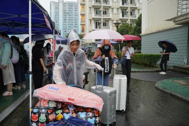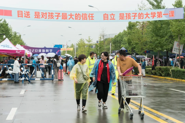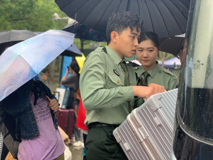 虽然昨天是大雨,但是学校的接站专车、迎新专线,为同学们保驾护航。