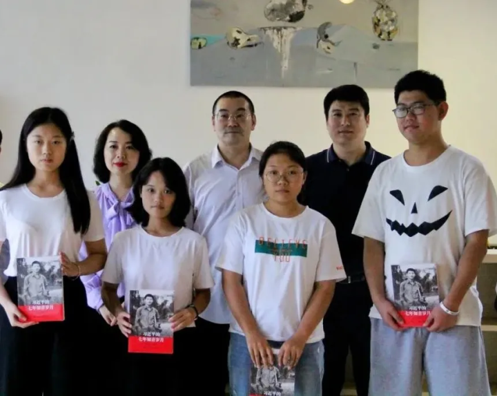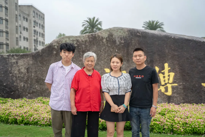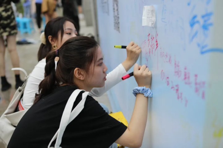 有的家长和孩子在校门口合影留言。
