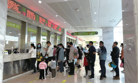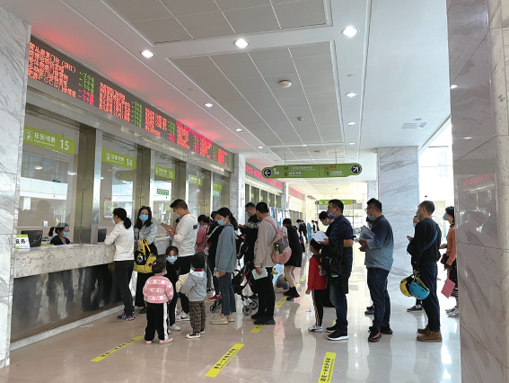 昨天下午1点,浙大儿院滨江院区等待挂号或收费的家长。记者 陈彦汝 摄