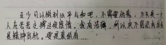 不需要伪装,不只是一个人在苦苦支撑这段感情。我有洁癖,所以绝不容忍肉体或是精神出轨。要是真的有……