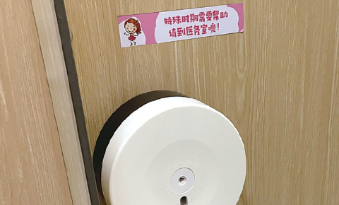 大家觉得这个想法很好,就由章校医负责落实。她觉得贴在厕所里每个坑位处,既能让每个孩子看到,又保护了个人隐私。于是,就给五六年级女厕所的每个坑位都准备了粉色的小提示牌,让孩子们万一遇到特殊情况,都可以来校医务室找她:“校医务室离五六年级女厕所都很近。”