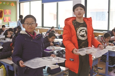 其次,针对“分量太大吃不完”这一项,学校和配餐公司商议,推出了“大份餐、小份餐随心选”的光盘措施。