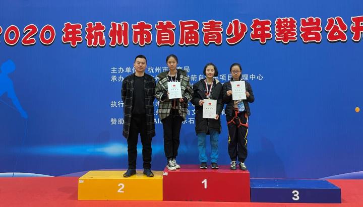 她的坚持训练也收获了成果,这几年,她先后获得2019全国青少年U系列攀岩联赛全能第二名、2020年浙江省青少年攀岩锦标赛速度第二名、2020年浙江省青少年攀岩锦标赛难度第三名、2020年浙江省青少年攀岩锦标赛全能第三名、2020年杭州市中小学生阳光体育攀岩锦标赛难度冠军。