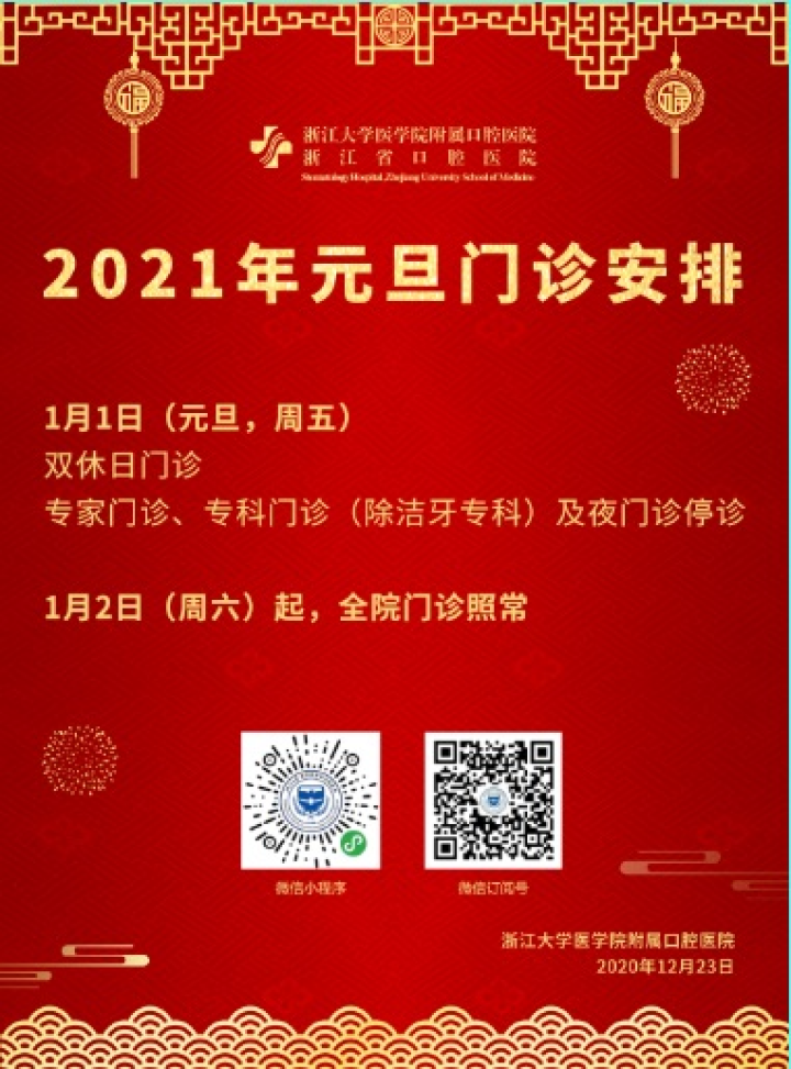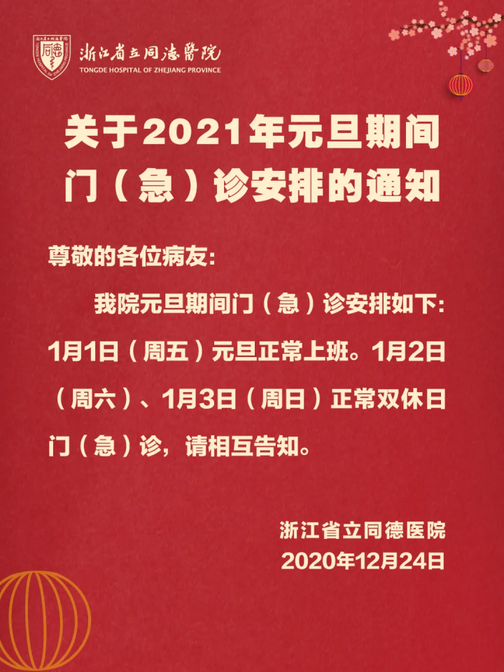 按照医院的统一安排,元旦期间,浙江省中医院西溪院区大型义诊,湖滨、下沙两院区2021年元旦期间门诊按照周末排班。