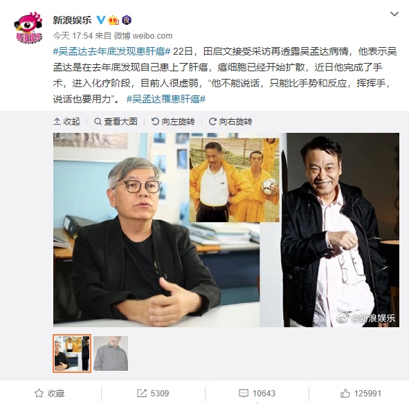 昨晚,#吴孟达患肝癌#热搜第一,很多网友都为他加油打气——