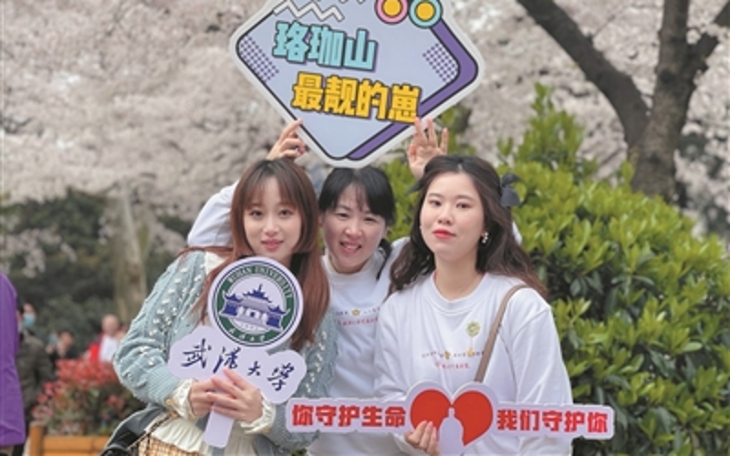 到武汉看樱花一直是她的愿望。2016年夏天,她和几个朋友到武汉游玩,正是小龙虾的季节,但不是樱花季,这让她后来心心念念,对武大樱花一直有憧憬;2020年,她因为抗疫来到武汉,时间紧,任务重,每天医院和驻地间往返,没有看到樱花;而这一次,“完完全全是以游客的身份,看到了最烂漫的樱花,小心愿达成。”