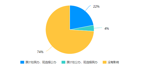 家长们的选择也会因各种原因改变,原计划上公办初中、现在选择民办初中的家长占4%,原计划读民办初中、现在选择公办初中的学生家长占22%。