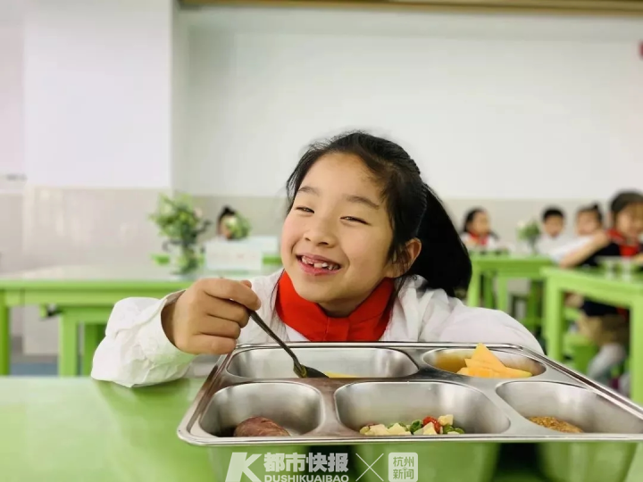 王老师介绍,学校的大厨陈师傅和膳管会的家长、老师们按照营养学要求,每周对菜谱进行合理安排和科学搭配,并随着季节变化不定时增加粗纤维辅食、应季蔬果等,平衡学生的膳食结构,保证营养均衡。