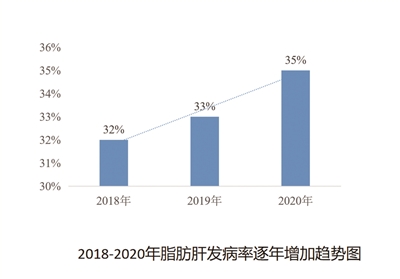 2018-2020年脂肪肝发病率逐年增加趋势图 (由施军平团队提供)