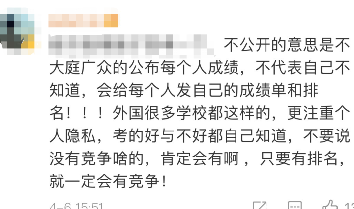 对于“学校不得公开学生个人的考试成绩、名次”这一条,这位老师也表示赞同。“老师需要反馈考试中反映出来的问题 ,但是不赞成在家长群里公开学生的考试成绩、名次。有一些成绩起伏比较大的学生,可以加强家校之间的沟通,通过私下交流反馈,保护和尊重学生的人格尊严。”