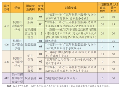 《通知》公布:杭州市教育局同意杭州市旅游职业学校、杭州市美术职业学校、杭州市人民职业学校和杭州市拱墅区职业高级中学的6个专业提前进行招生面试工作,面试合格者方可报考相关专业。