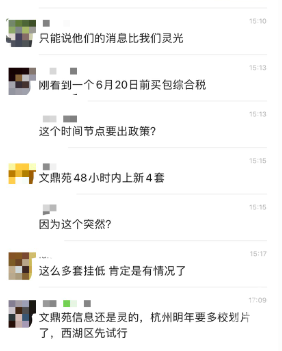 有家长讨论,文鼎苑小区在某售楼平台48小时内上新了4套,就是受此消息影响。