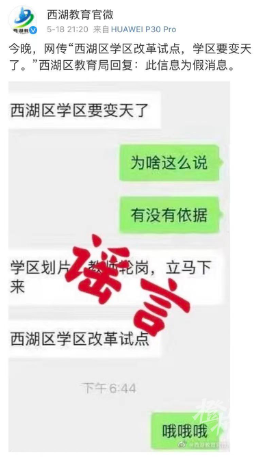 昨天21:20,西湖教育官方微博进行了辟谣:此消息为假消息。