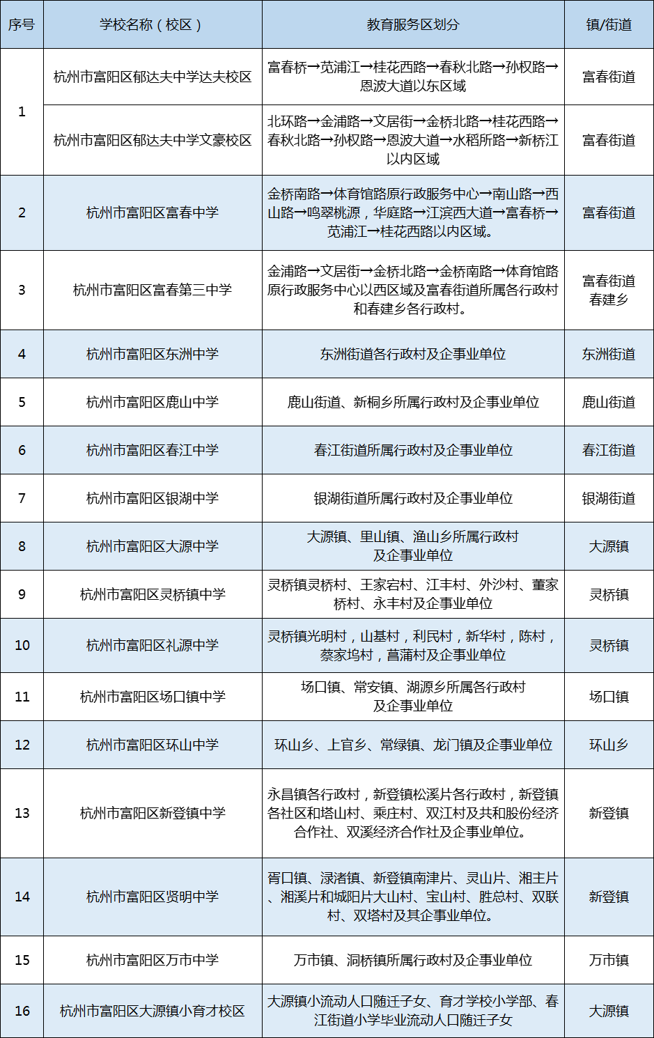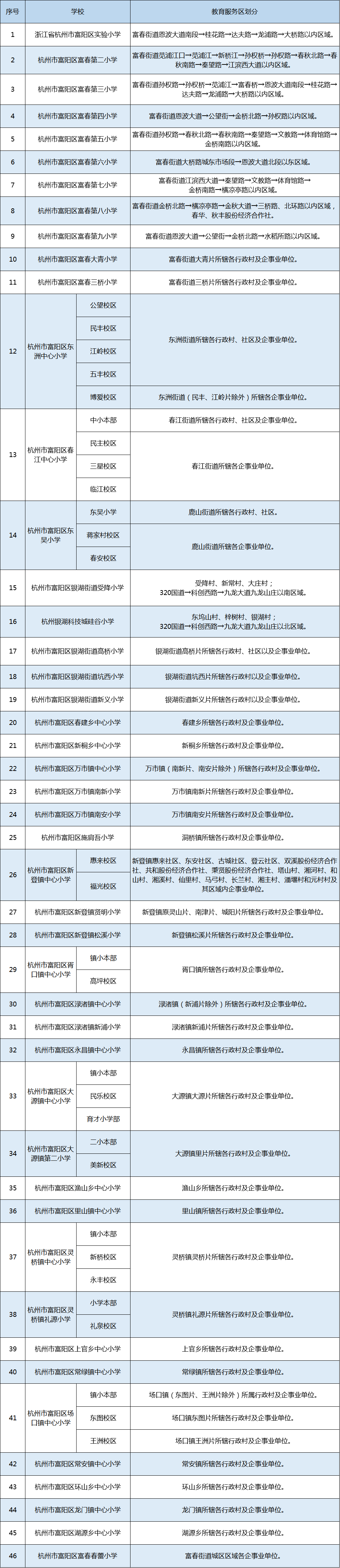 权威发布!2021年杭州市中小学教育服务区(学区)公布!