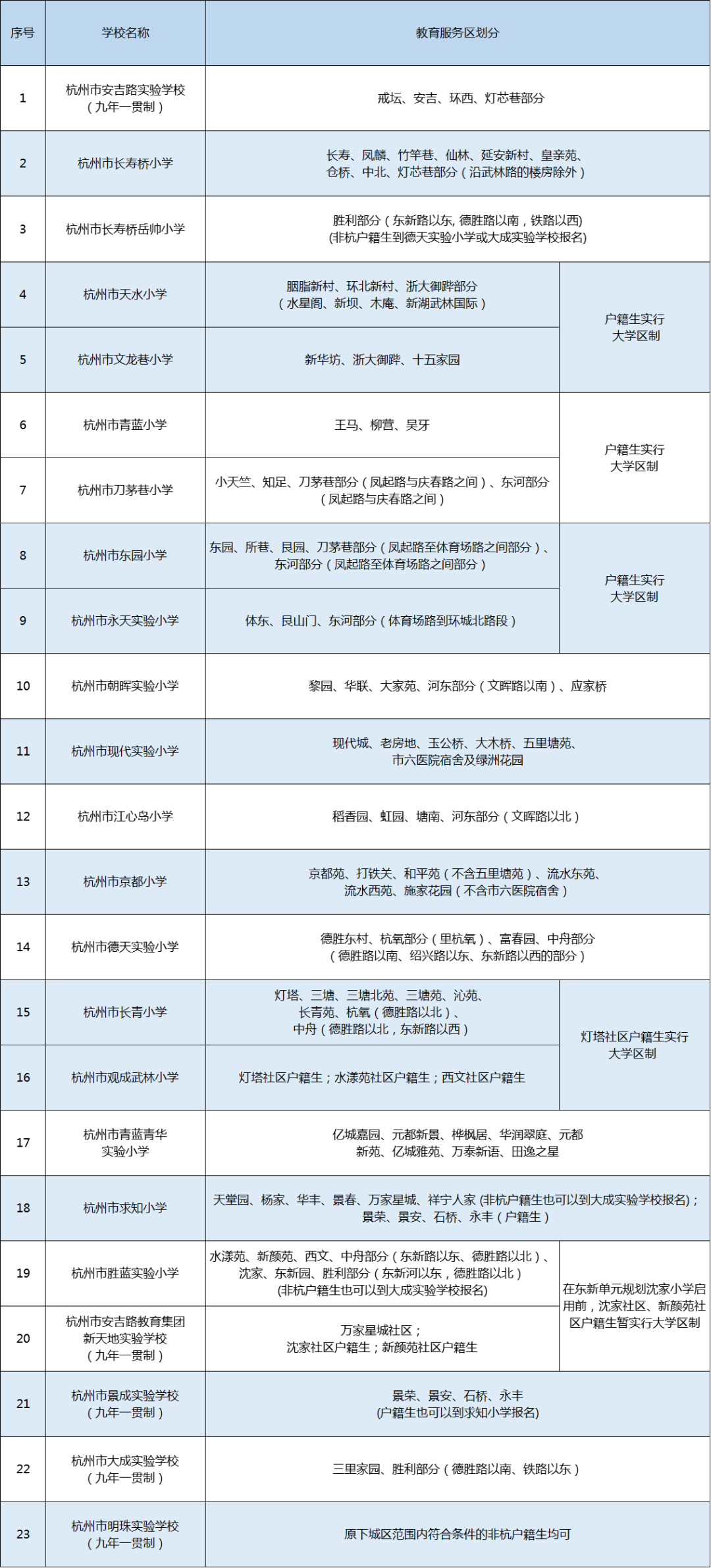 权威发布!2021年杭州市中小学教育服务区(学区)公布!