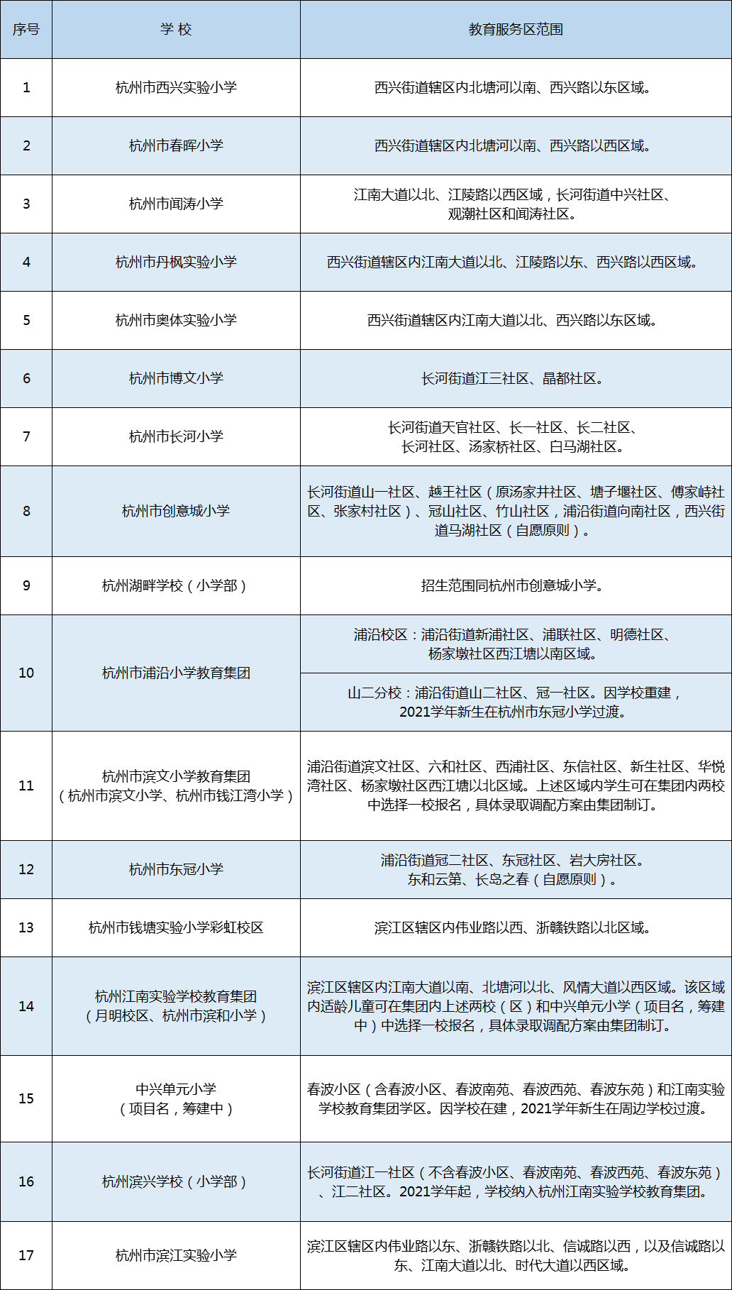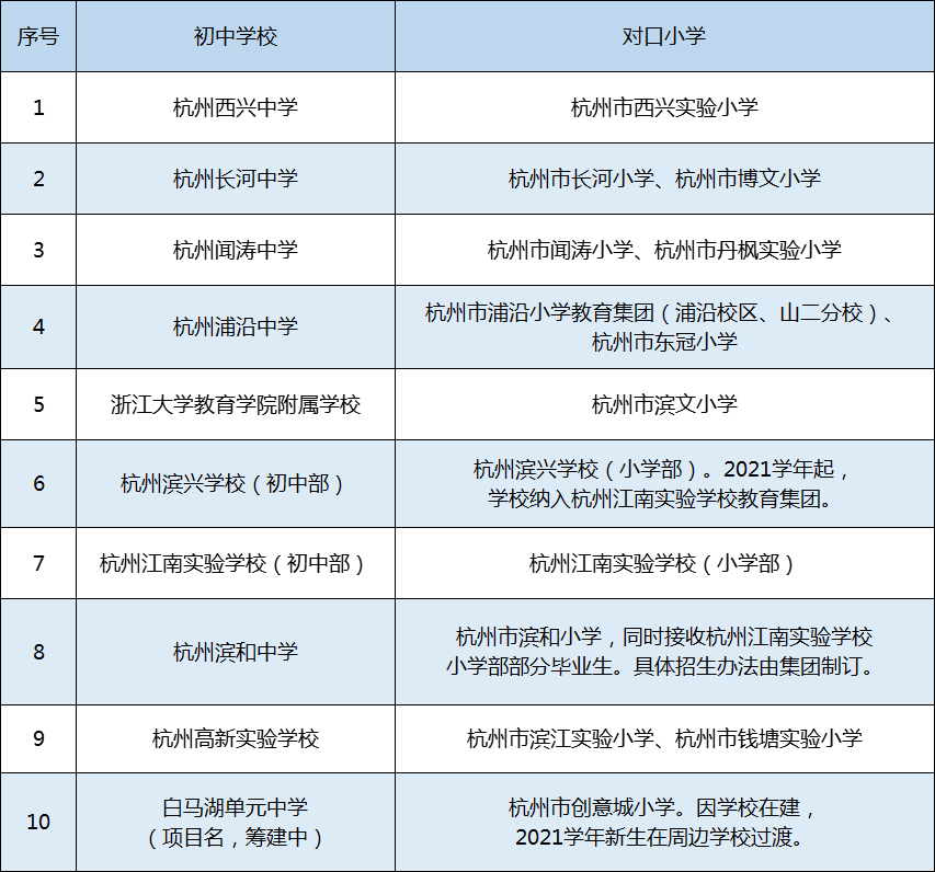 2021年,滨江区各公办初中采用单校划片、对口直升方式招生,即一所初中对口接受片区内符合条件的小学毕业生入学。