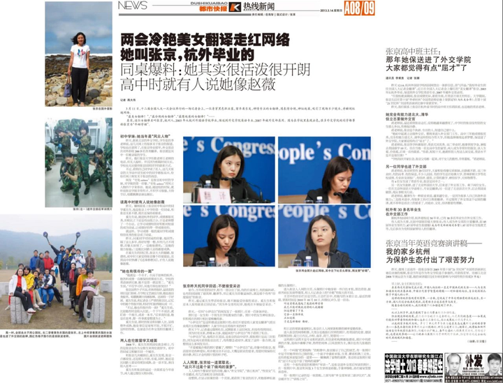 张京,2003年从杭州外国语学校毕业,保送到外交学院英语专业,2007年被外交部录用。因为在学校里表现出色,很多外交学院的同学都尊称张京为“牛掰学姐”。