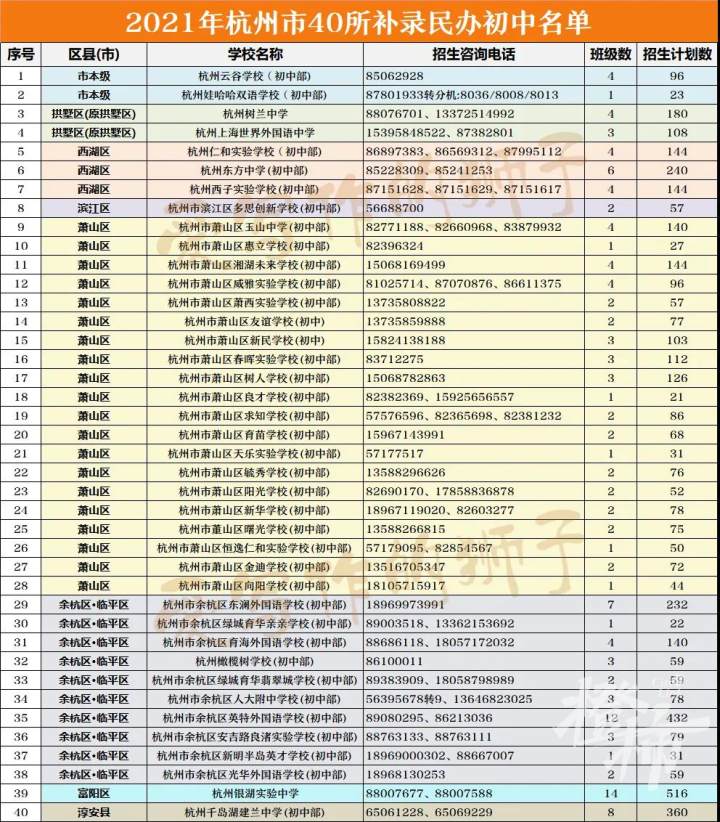 40所补录民办初中名单: