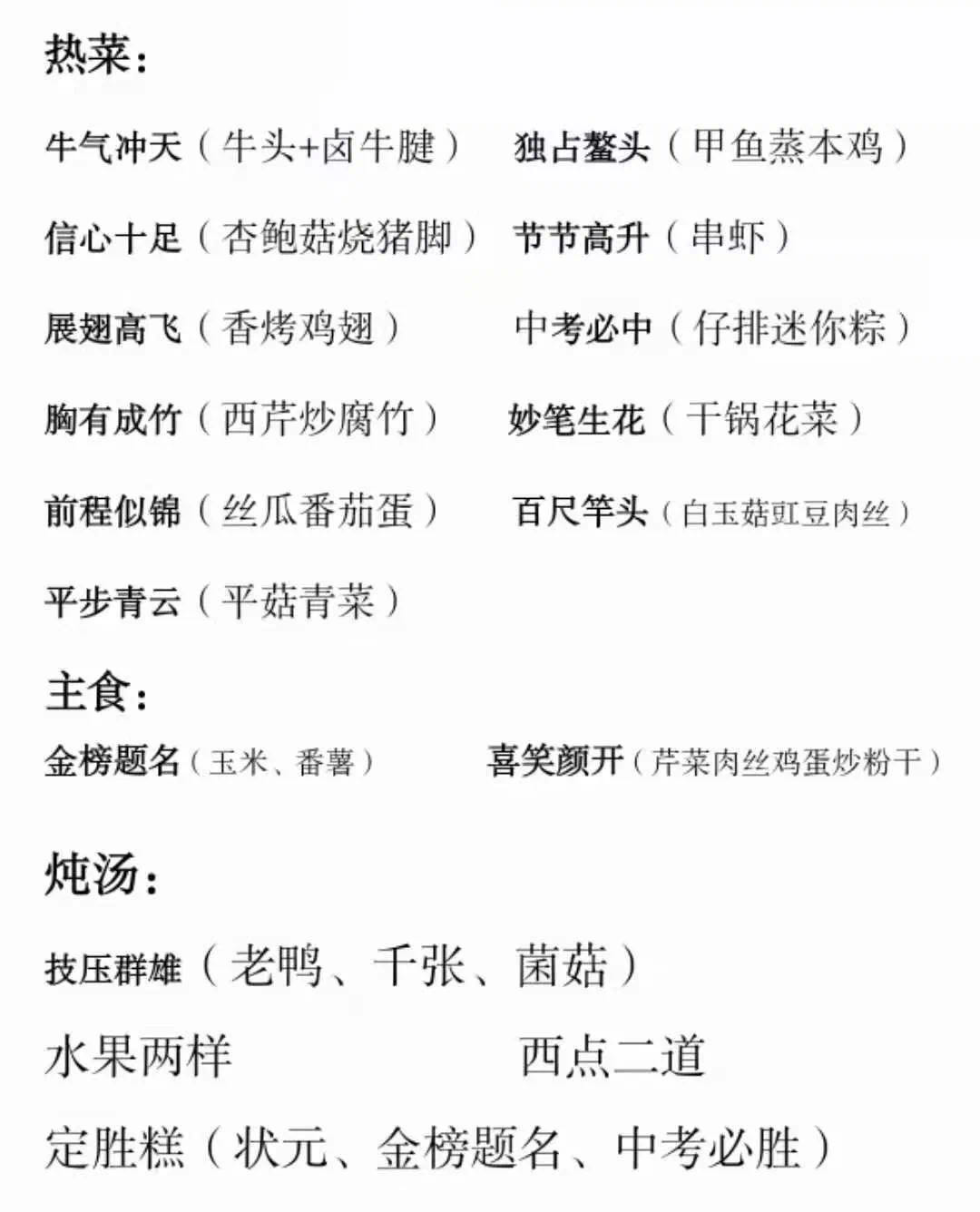 学校还给中考生们安排了一顿自助大餐,菜单看上去都喜气洋洋。
