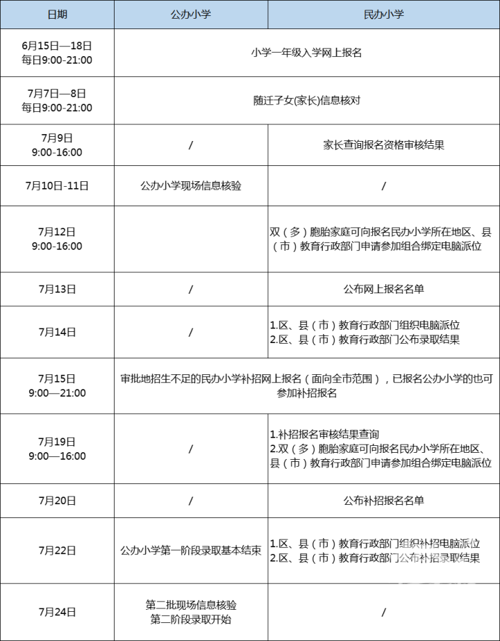 今年杭州小学的报名时间在6月15日-18日每日9:00-21:00。适龄儿童只能在公办小学或民办小学选报一类,其中选择民办小学的应在当地招生的学校中选报一所。