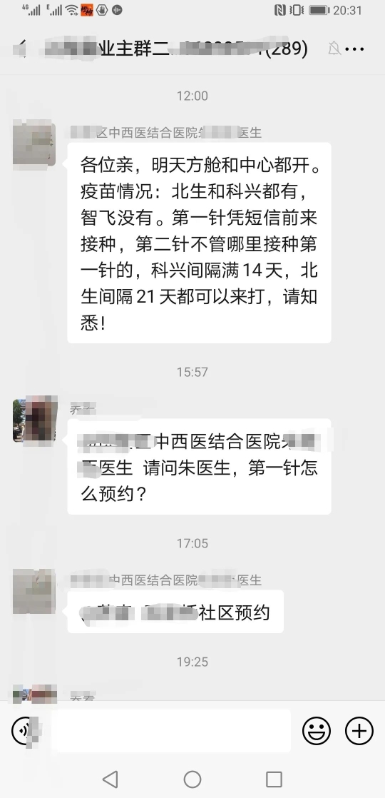 今天下午2点,出门在外的周女士忽然收到家里保姆的微信,说马上到街道社区卫生服务中心可以接种新冠疫苗第一针剂。