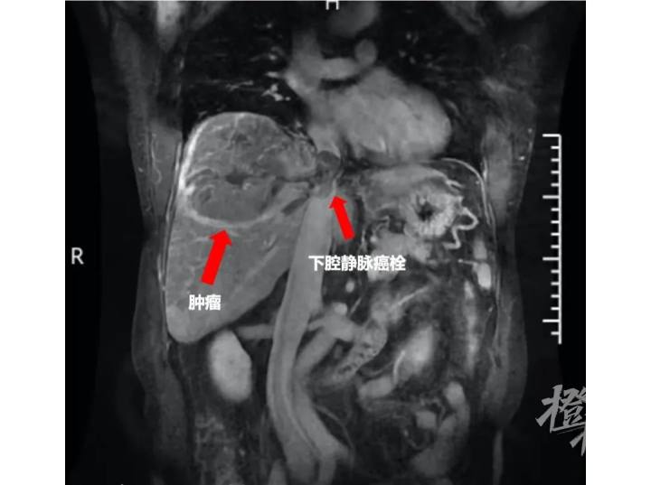 “病情还是非常棘手的。”梁医师坦言,当时肿瘤本身已经十分巨大,且肝癌细胞已经“跑”到血管中,且在下腔静脉中聚集成团,形成鸽子蛋大小的“栓子”,两处肿瘤就如同身体内两颗“定时炸弹”,特别是下腔静脉癌栓已经离右心房非常近,随时可能脱落进入心脏,时刻都有可能危及生命。