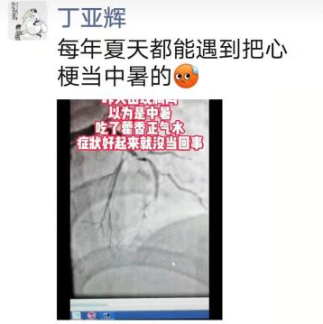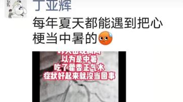 都市快报讯 “每年夏天都能遇到把心梗当中暑的”最近,浙江省人民医院心血管内科副主任、主任医师丁亚辉发了这样一条朋友圈。