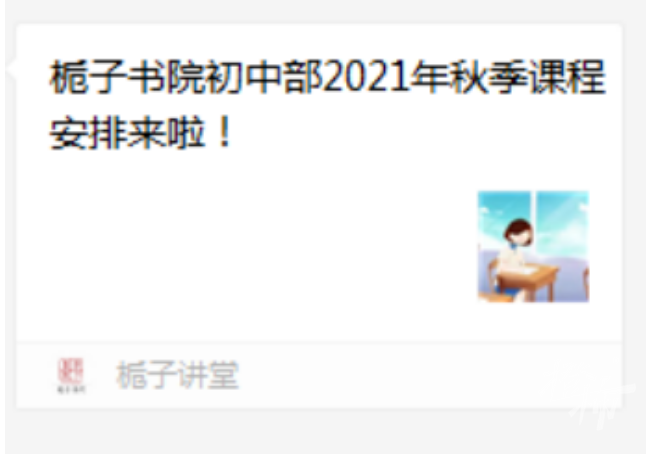 这则招生信息来自于栀子书院,该培训机构发布的“初中部2021年秋季课程安排”链接中,显示将在秋季推出语文、数学、英语和科学四门课程,而且针对学生的能力,分层开设实验A、B班。