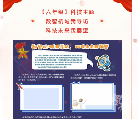六年级的孩子要寻觅杭州城里的“黑科技”,做一次科学小实验,设计一个科学小创意等,融入“数智”生活,展望美好未来。