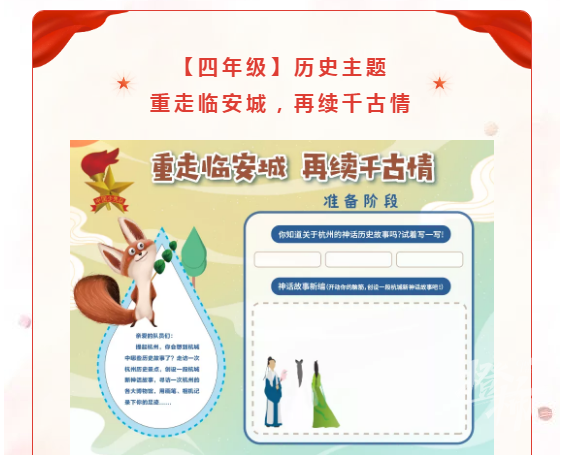 四年级同学则去寻找杭州城里的历史足迹,自己也来编一段神话故事。