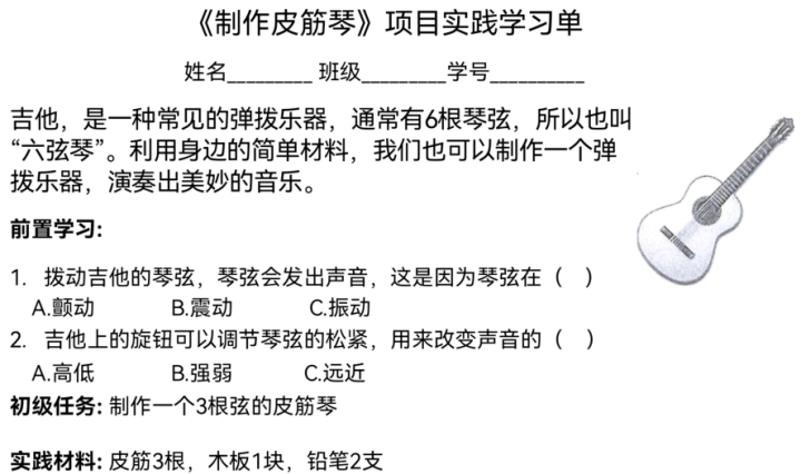 娃哈哈小学请五年级的孩子制作一个属于自己的竹节人。
