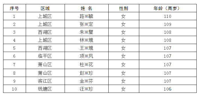 杭州发布消息:近日,市卫生健康委公布了杭州百岁老人数据。十大寿星是谁?为你揭秘!