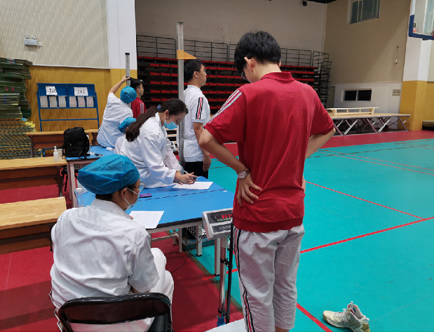 浙江大学附属中学的郭医生,做了校医多年。她说,学校里量身高,用的是头顶压杆的那种传统测量器具。医生会坐在桌子上,保证视线和压杆齐平,这样误差最小。