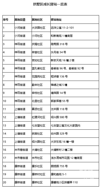 2021年,拱墅新增了18家成长驿站,这样一来,全区一共有41家驿站,分布各个街道。