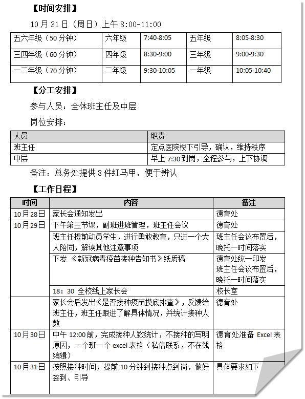 九莲小学在接到疫苗接种通知的第一时间召开行政会议,讨论制定学生新冠病毒疫苗接种工作方案。