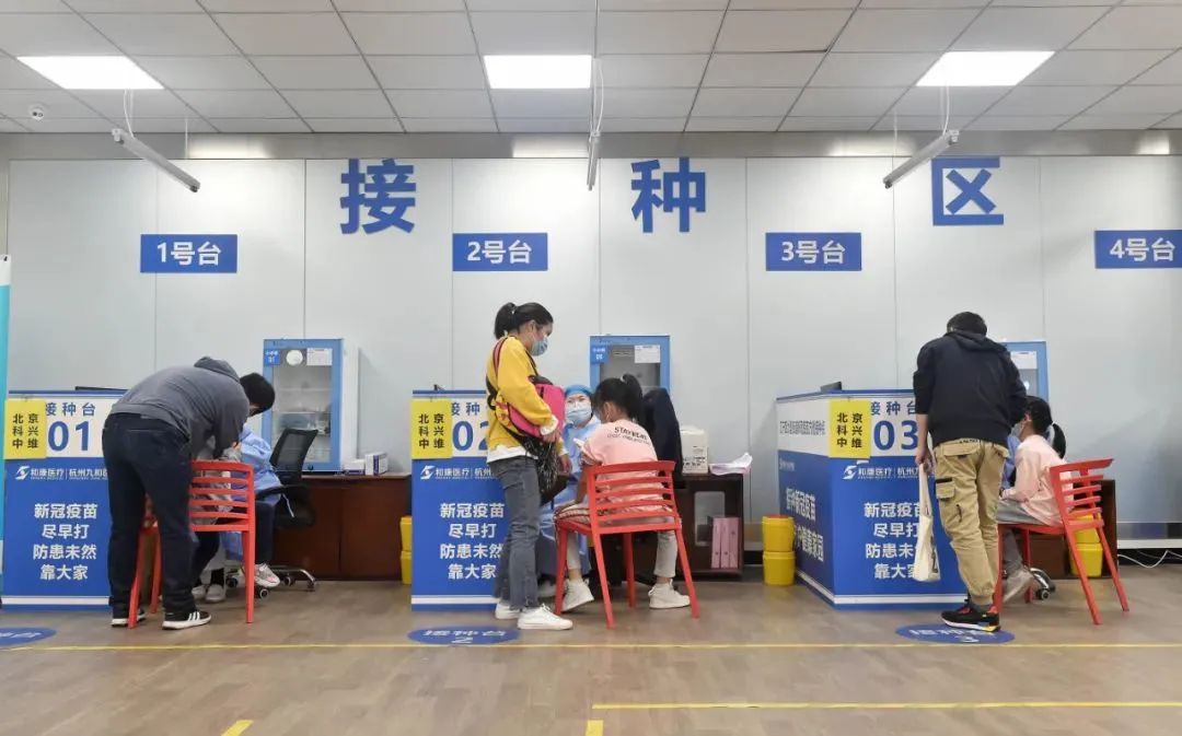杭州市上城区九堡街道社区卫生服务中心临时扩增至9个登记台和8个接种台,安排了25位医务人员在现场为前来打疫苗的孩子和家长服务。