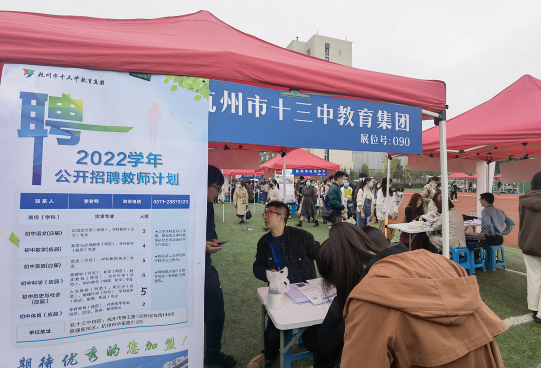 本次招聘会为教育类专场,杭州市教育局下辖区县及其他市区县13家教育局组团参会,近300余所学校为省内2022届毕业生提供了4000余个教师岗位。