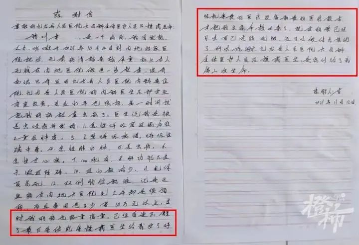 11月12日,李先生平安出院,并写下了文章开头的感谢信。