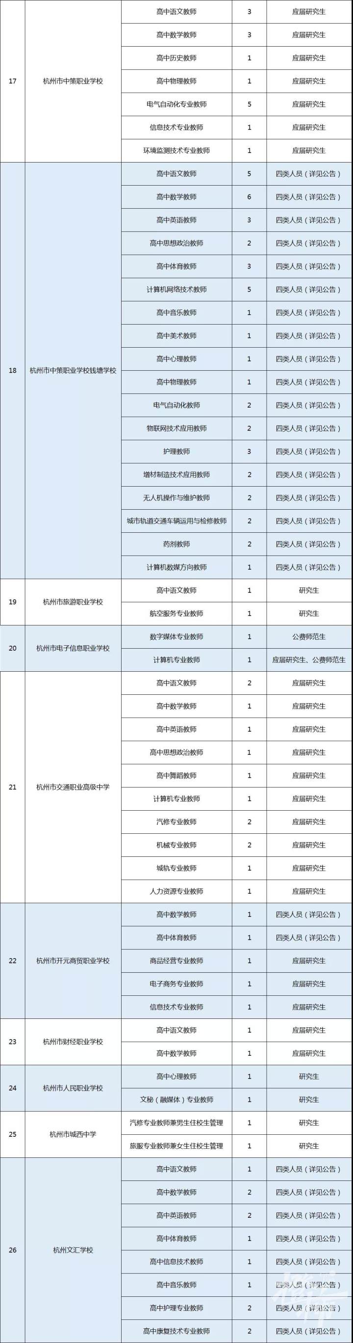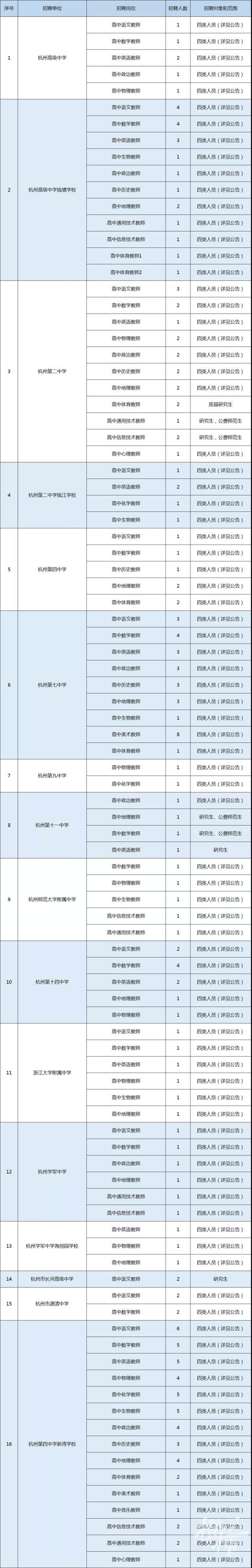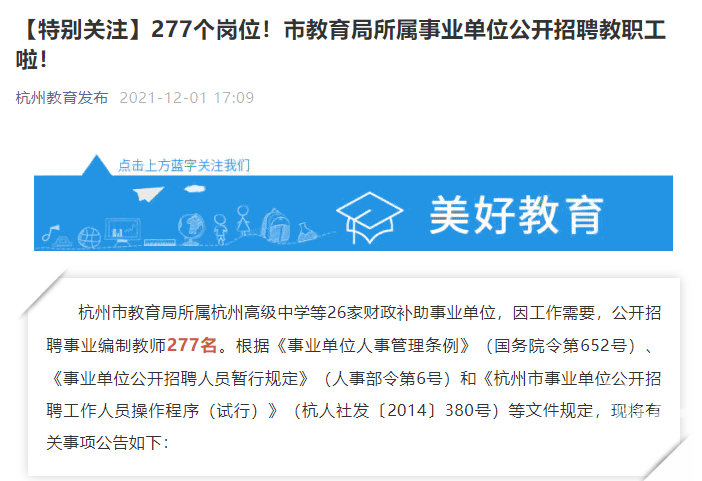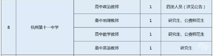 昨天,杭州市教育局发布招聘公告,杭州高级中学等26所学校(校区),要招收事业编制教师。
