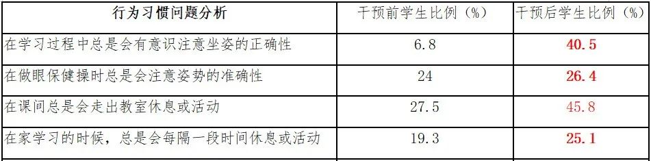 学校鼓励学生不要一味盯住学习,而是要多交流用眼习惯、比一比视力。三年下来,分析近3年的视力不良新发率数据,干预后2020学年新发率明显下降,行为习惯也有很大进步。