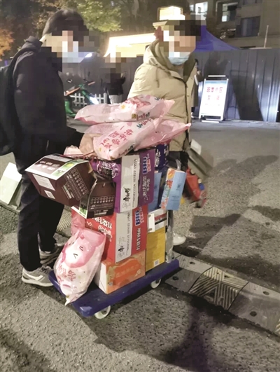 “怎么啦?拿不了?你住哪一幢?我帮你拿,我是邻居,反正也出不去了。”一位戴着口罩的年轻男子正进小区,停下了脚步。
