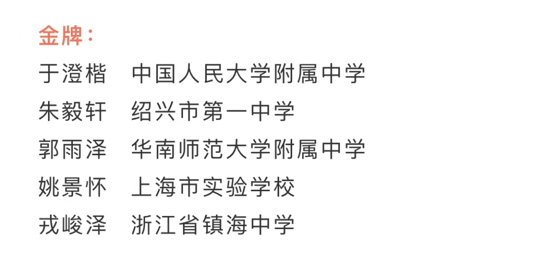 其中有2枚金牌属于浙江!分别来自绍兴市第一中学的朱毅轩和浙江省镇海中学的戎峻泽。