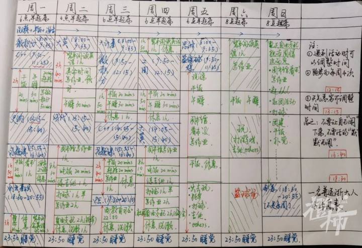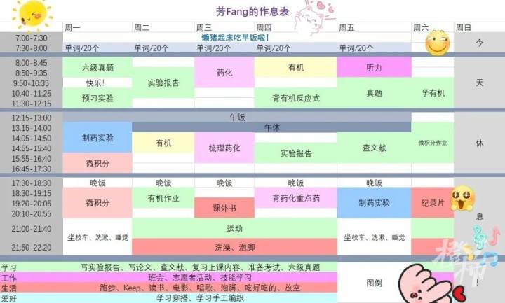 还有同学,提前做好了一周的规划。本周事本周毕,能够省下更多时间。一起来看看一周作息表。