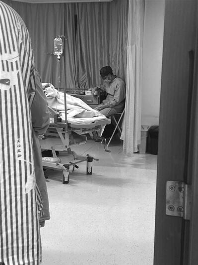 大约5点50分,前面一台手术刚结束,手术室的门打开,林女士就从门缝里瞄到了潘文胜主任小憩的样子:低头,弯腰,眉眼紧闭。