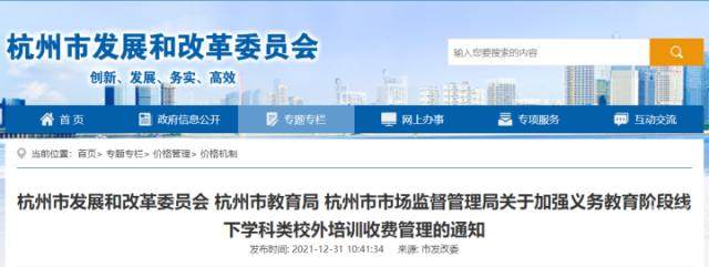 为有效减轻义务教育阶段学生校外培训负担,规范线下学科类校外培训收费管理,根据《中共中央办公厅 国务院办公厅关于进一步减轻义务教育阶段学生作业负担和校外培训负担的意见》(中办发〔2021〕40号),《国家发展改革委、教育部、市场监管总局关于加强义务教育阶段学科类校外培训收费监管的通知》(发改价格〔2021〕1279号)和《省发展改革委 省教育厅 省市场监管局关于加强义务教育阶段学科类校外培训收费管理的通知》(浙发改价格〔2021〕378号)精神,现就杭州市义务教育阶段线下学科类校外培训收费管理相关事项通知如下: